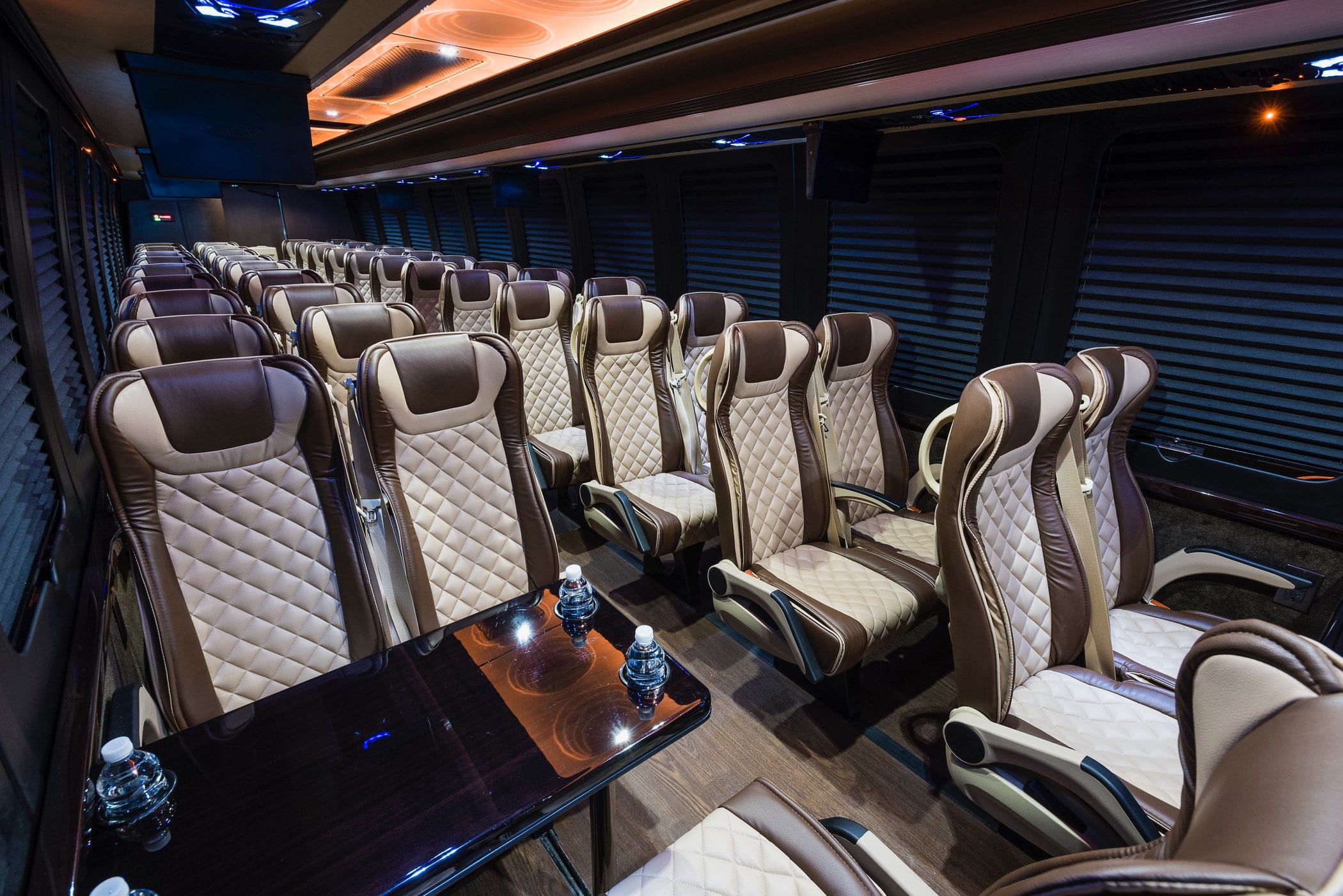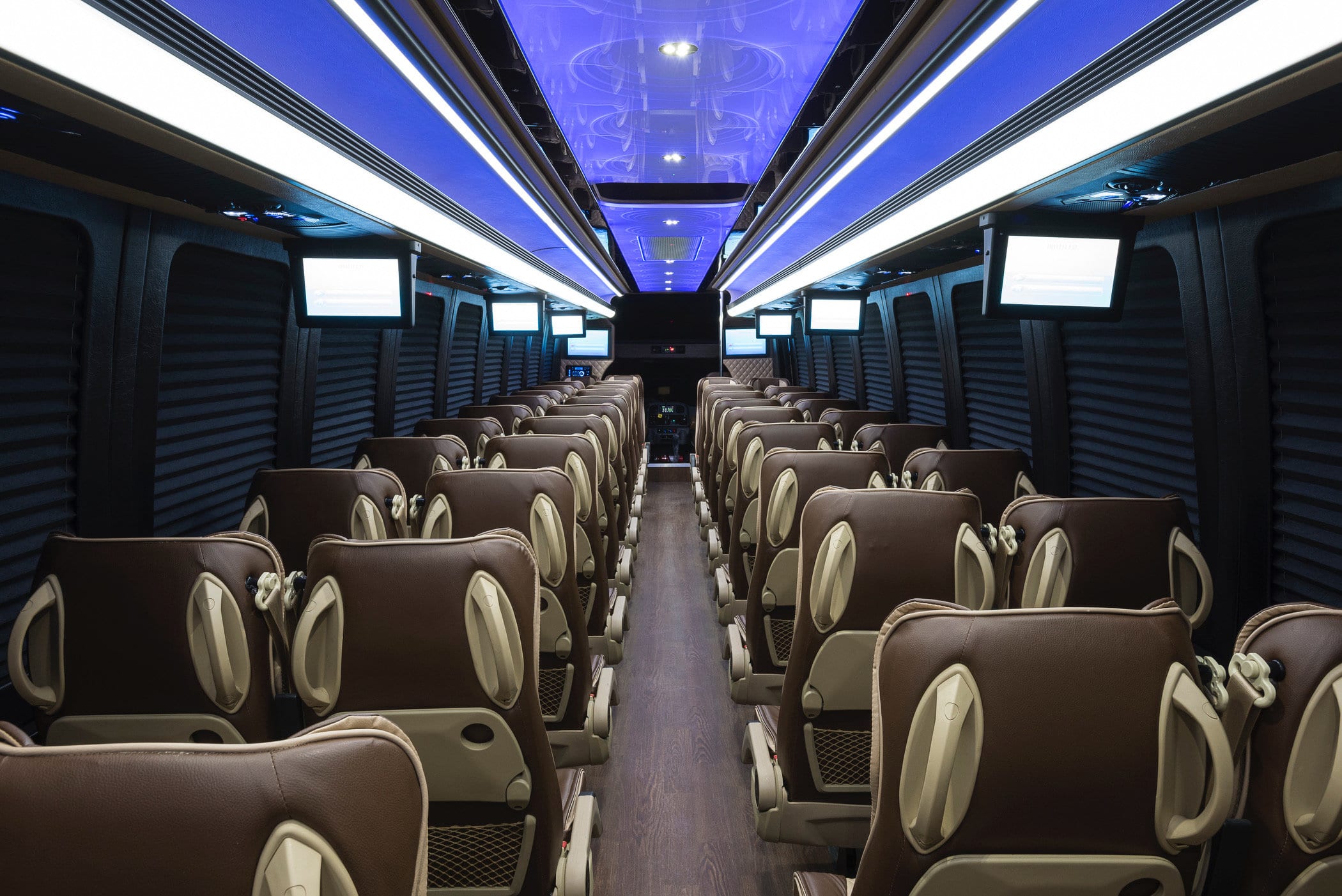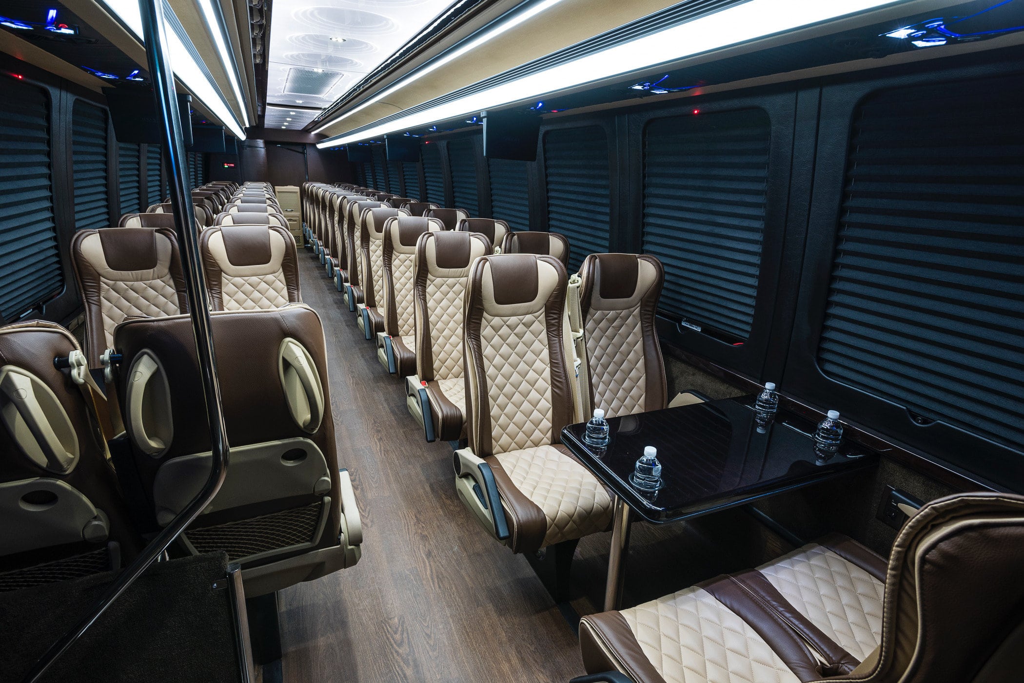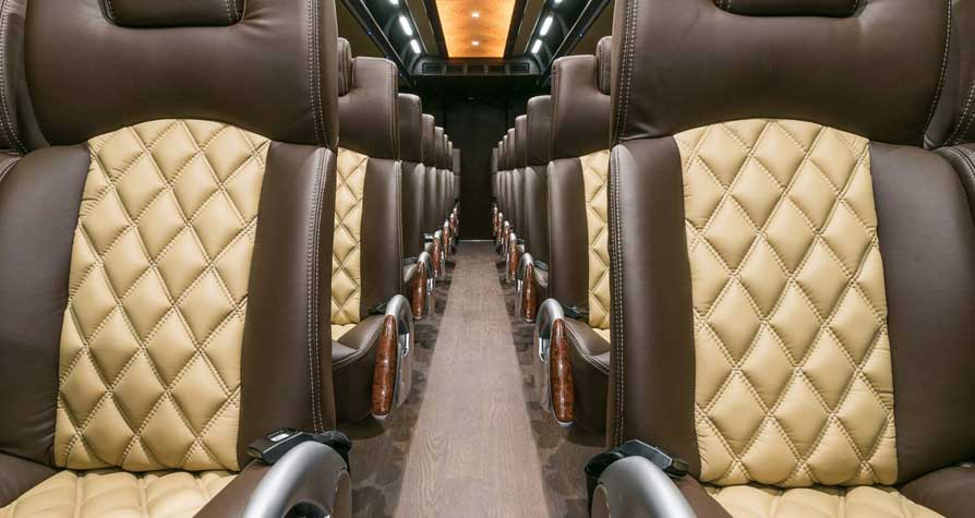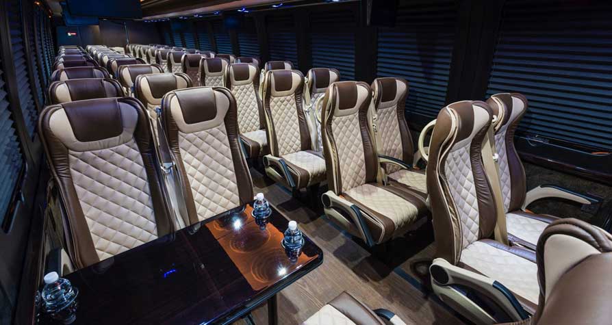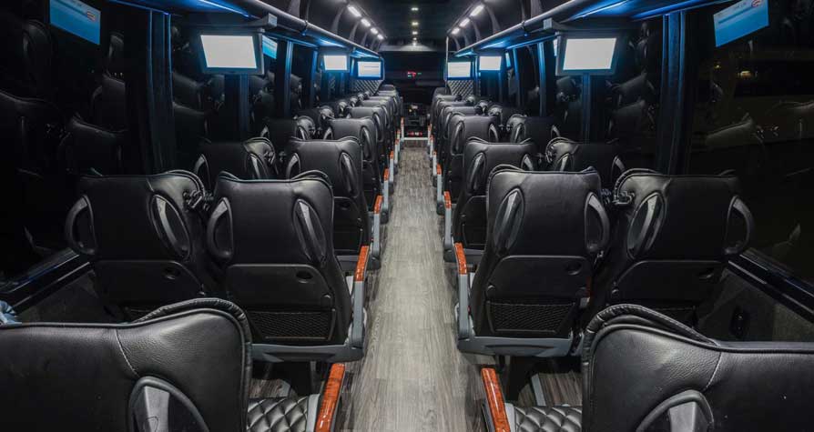 Executive Group Comfort – Our executive coach bus rental is designed for travelers who want more than basic transportation. With luxury seating, leather interiors, hardwood flooring, and a spacious onboard lavatory, passengers can relax in comfort throughout the trip.